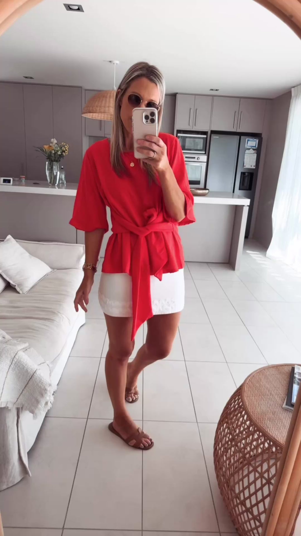The Sunrise Top, the perfect blend of relaxed elegance and everyday ease. Made from a beautiful linen blend fabric in a vibrant sunrise red, this top adds instant polish to your wardrobe while keeping things light, breathable, and effortless.